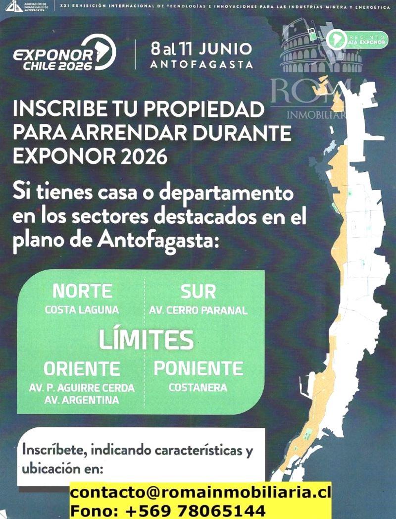 O BIEN A LOS CORREOS: CONTACTO@ROMAINMOBILIARIA.CL ALOJAMIENTO@EXPONOR.CL “